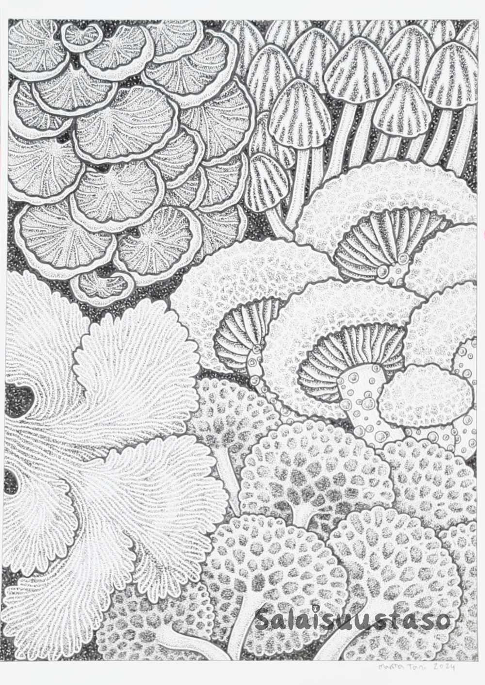 Maima (Maria) Tani on tunnettu outsider-taiteilija ja kulta-alan artesaani. Hänet tunnetaan lukemattomista pienistä pisteistä koostuvista yksityiskohtaisista mustavalkoisista piirroksista sekä värikkäistä, monimuotoisista virkkausteoksista. Maima Tanin rakkaus meren ja metsien lajikirjoa kohtaan välittyy vahvasti hänen taiteestaan. Erityisesti häntä kiehtoo kambrikausi, joka oli geologinen aikakausi 542-490 miljoonaa vuotta sitten. Tällä hetkellä Maima Tanin tavoitteena on virkata viisisataa ammoniittia kierrätyslangoista tekstiili-installaatioksi.